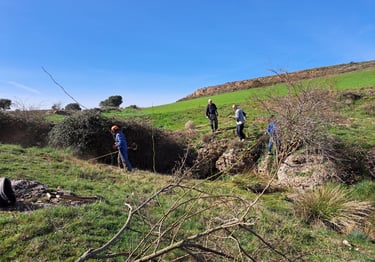 La Fuente de Fuentecortezo es un gran manantial, pero es menos frecuentado por estar algo distanciado del pueblo. En esta ocasión decidimos cortar y quemar las zarzas que anegaban el nacimiento y el espino del risco, así como los juncos y la maleza para que el agua discurra con libertad. Dos horas de intenso trabajo. 24 DE MARZO DE 2024.