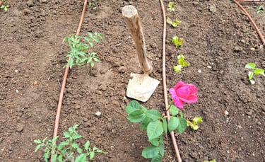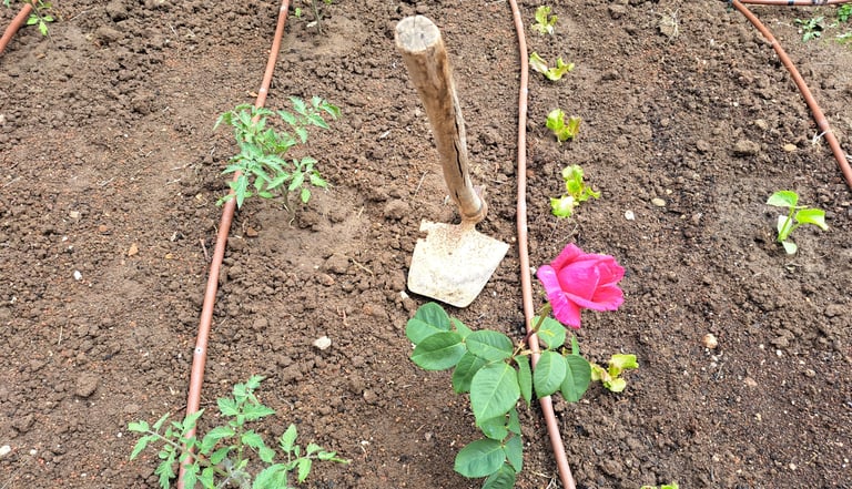 Huerto y surco, con azada en Quintanas Rubia